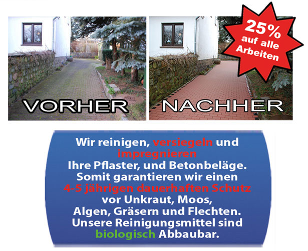 Bei einem Termin direkt bei Ihnen vor Ort auf einer Probefläche, können Sie sich von unserer Arbeit mit eigenen Augen überzeugen und sehen sofortige Ergebnisse. Ob Terrassenplatten oder Naturstein wie Granit und Sandstein, wir sorgen dafür, dass Ihre Außenanlagen schon bald wieder in neuem Glanz erstrahlen.